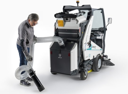Unatoč kompaktnoj veličini, sposobna je učinkovito i precizno prikupiti velike količine otpada i krhotina. To je moguće zahvaljujući inovativnom sustavu sakupljanja koji kombinira snažno usisavanje s transportnom trakom, osiguravajući potpuno punjenje spremnika za otpad.