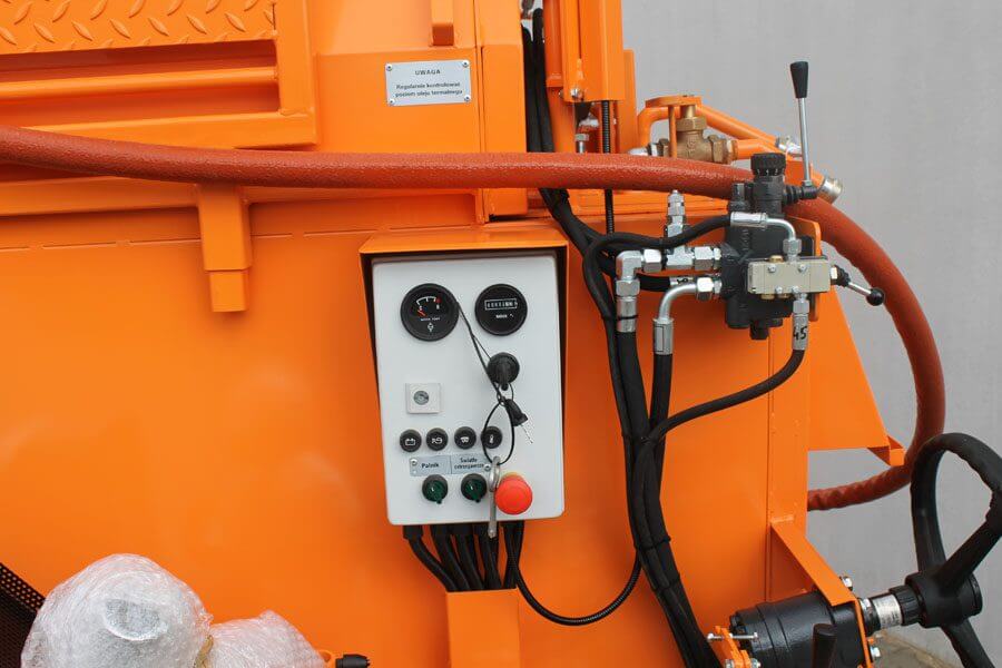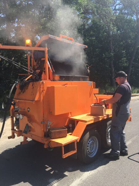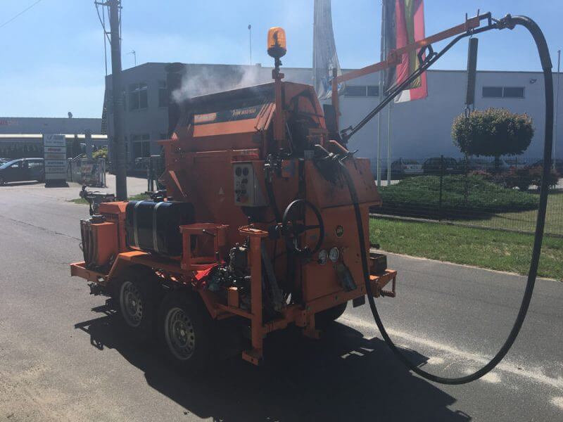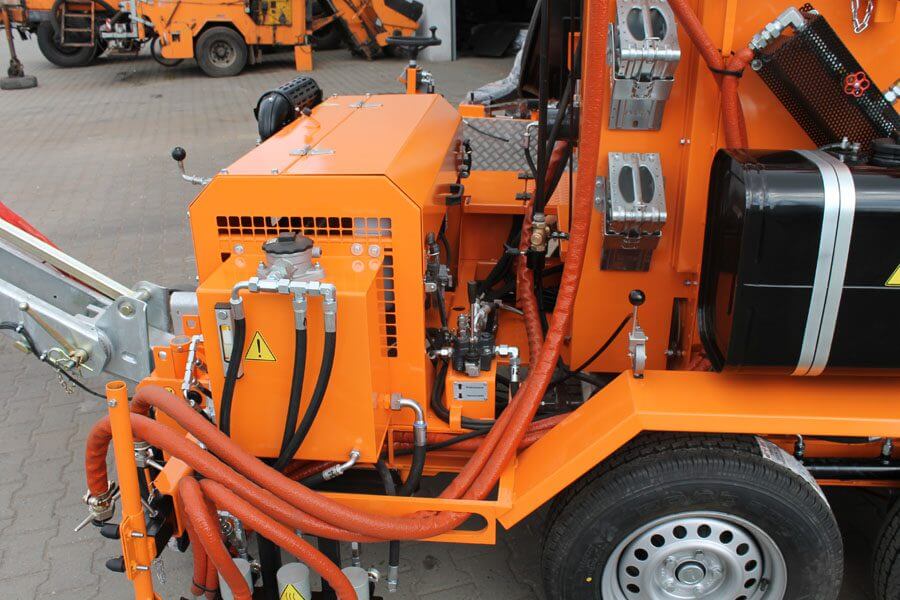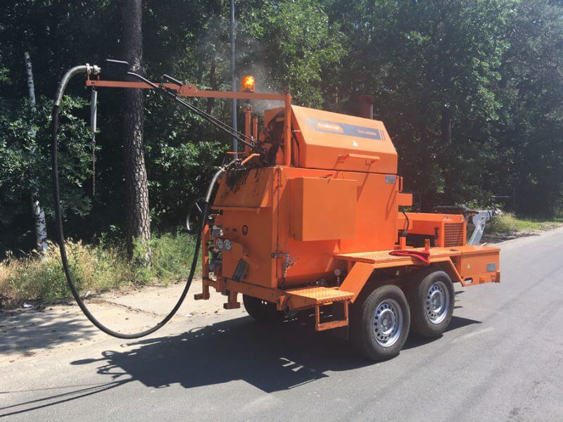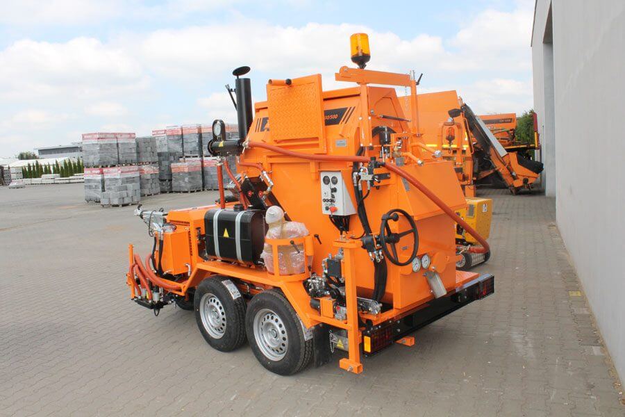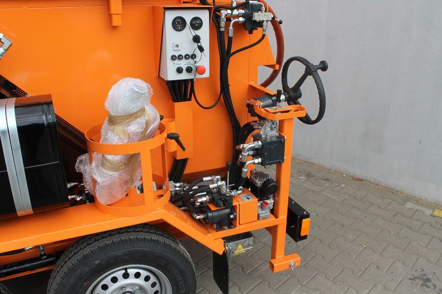 Opremljen je grijačem za grijanje toplinskim uljem i pumpom za napajanje s hidrauličkim pogonom.Crijevo za raspršivanje s dovodnom cijevi omogućuje sigurno punjenje svakog utora. Raspršivač koji je prikladan za raspršivanje brtvila ili asfalta omogućuje punjenje rubova svježe postavljene bitumenske mase.