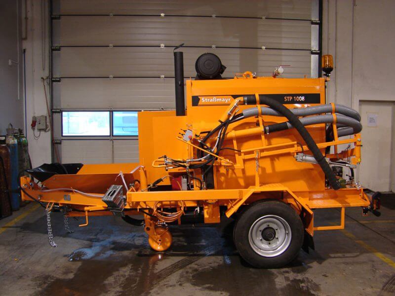 Stroj za popravak cesta Strassmayr STP 1008 AH namijenjen je za popravak djelomične površine ceste pomoću emulzije i šljunka. Cjelokupni popravak provodi se pomoću jednog uređaja montiranog na jednoosovinsku prikolicu, prilagođenu za rad s bilo kojim kamionom kiperskog tipa. Tovarni prostor kamiona ispunjava ovdje funkciju spremnika za šljunak. Dizajn uređaja omogućuje nesmetano i profesionalno izvođenje svih faza procesa punjenja rupa na površini ceste.
